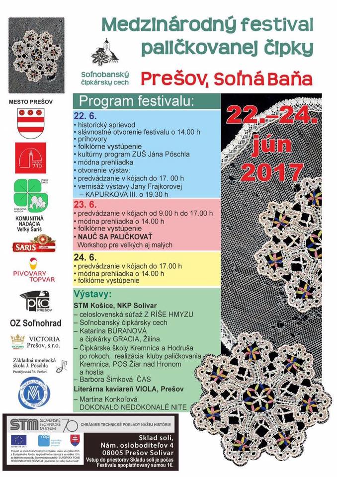 Více z festivalu si můžete prohlédnout na facebooku Mezinárodní festival paličkovanej čipky Prešov, Soľná Baňa