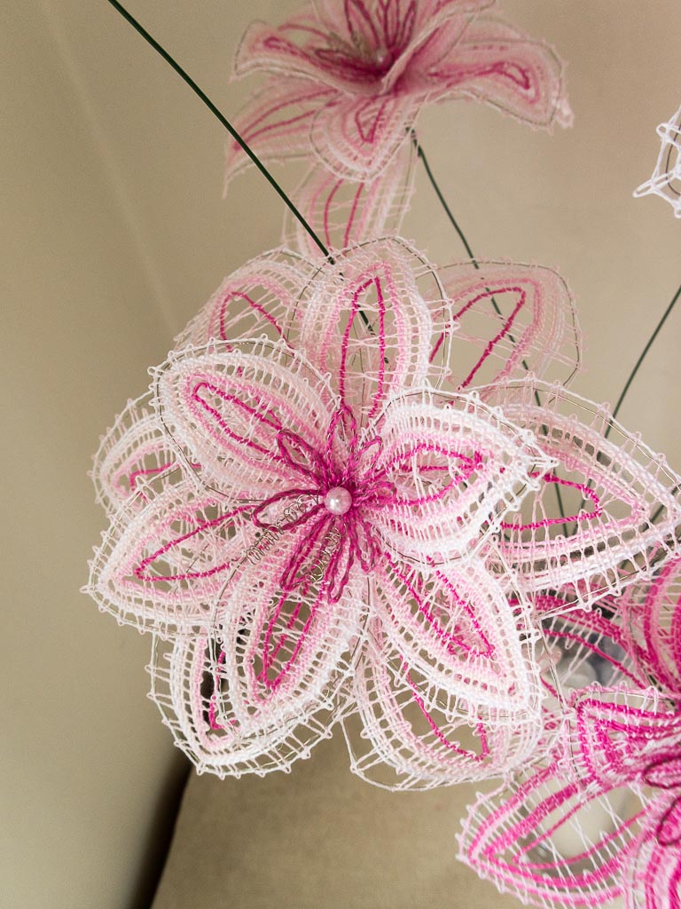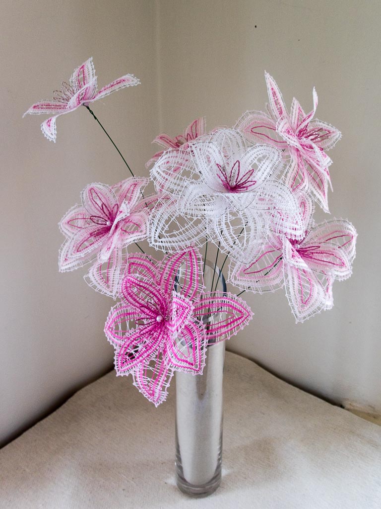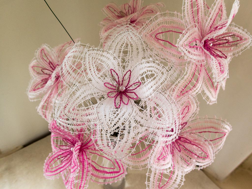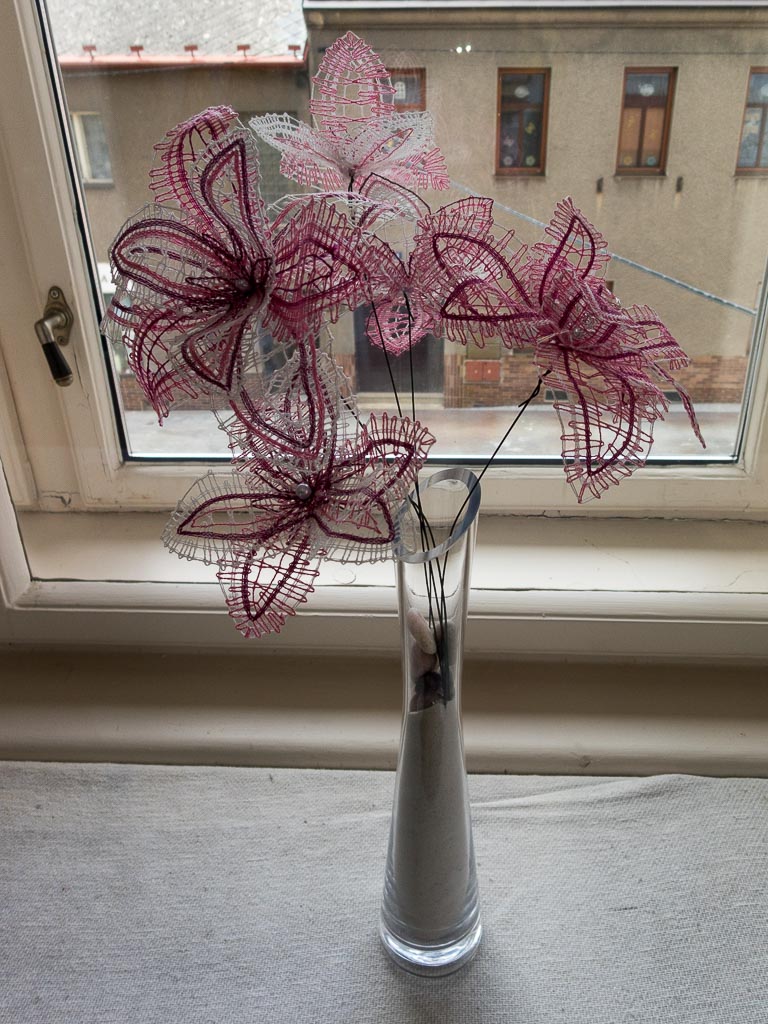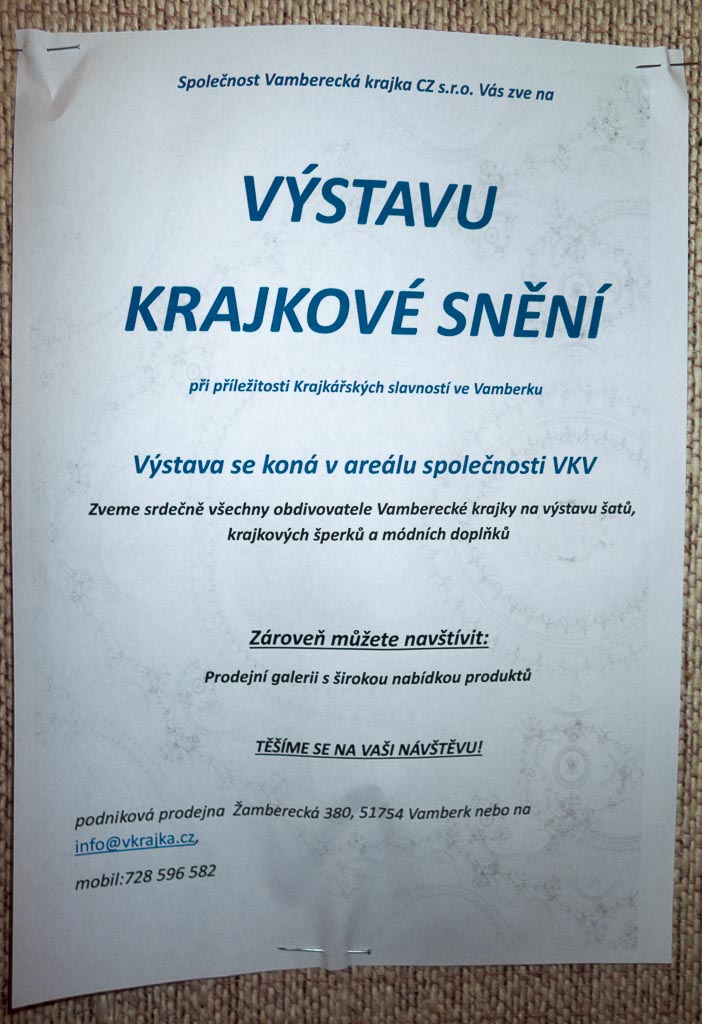 Dalším zájezdem pořádaným krajkářkami z kurzu jsem se vydala s mámou do Vamberka, kde bylo tradiční mezinárodní setkání krajkářek. Prošly jsme si trhy a výstavy, které se konaly po celém centru Vamberka. Na trzích prodávali nejen podvinky a nitě krajkářky z celého Česka a ze zahraničí, ale i prezentovali krajku. Nakoupila jsem si pár podvinků a knihy od Jany Novak, které mne zaujaly. Byly jsme se také podívat do muzea, kde byl starý ruční stroj na výrobu krajkových pásků, přehled historických vzorníčků, prezentace krajky od starých časů po současnost a výstava děl Milči Eremiášové. Na festivalu bylo hodně věcí na prohlédnutí, že jsme si ani nestihly všechno za celý den prohlédnout a projít. Byla jsem moc ráda, že jsem mohla navštívit i toto známé město krajky Vamberk.