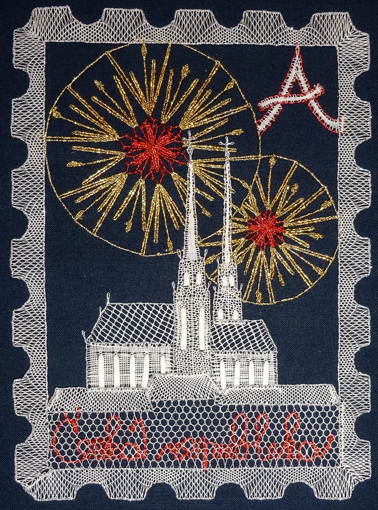 V časopise Krajka 2/2018, byla vyhlášena mimořádně soutěž, která byla opět k výročí založení republiky a to na téma „Krajková poštovní známka“. Hned, jak jsem si o soutěži cestou z Vamberka přečetla, byla jsem odhodlaná, že se chci také zúčastnit. Jelikož jsem z Brna, rozhodla jsem se udělat poštovní známku s dominantou typickou pro toto město, což je katedrála Petra a Pavla, která je každý rok v červnu zpestřena přehlídkou soutěžních ohňostrojů Ignis Brunensis.