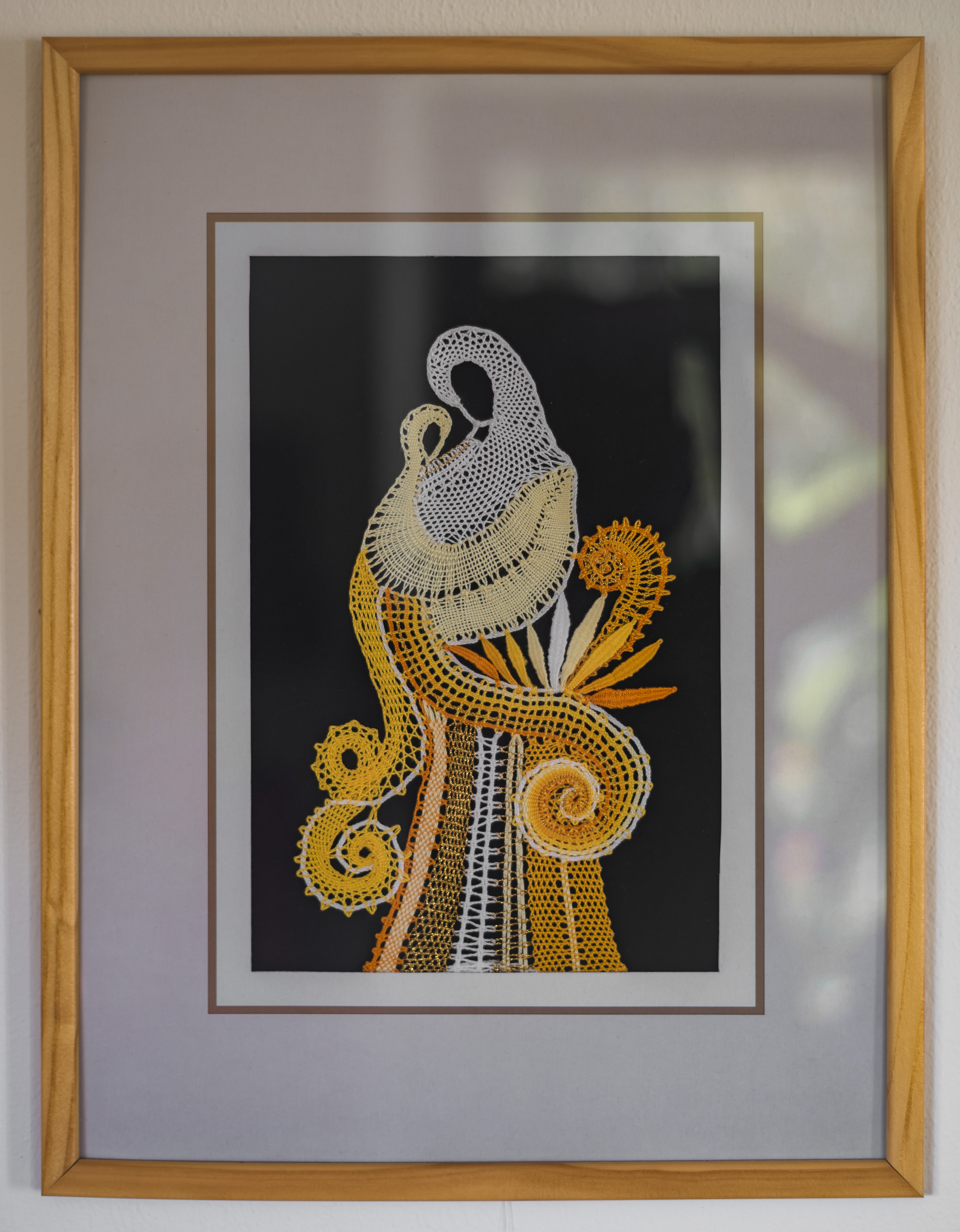 Blížící se Vánoce a tím i hledání, nakupování a balení dárků mě napadlo darovat paličkovaný obraz pro moji tetu a její rodinu. Rozhodla jsem se upaličkovat madonu s děťátkem podle podvinku Ivany Domanjové. Udělala jsem ji v bílých, žlutých až oranžových odstínech a místy jsem použila i zlatou niť. Nechala jsem se inspirovat vzory, podle kterých byla madona s děťátkem paličkována. Hotovou barevnou paličkovanou krajku jsem dala do přírodního dřevěného a světlého rámečku s paspartou a sklem. Dárek jsem zabalila a předala jsem jim to. Dárek se jim líbila a hned si ho pověsily nad krb.
