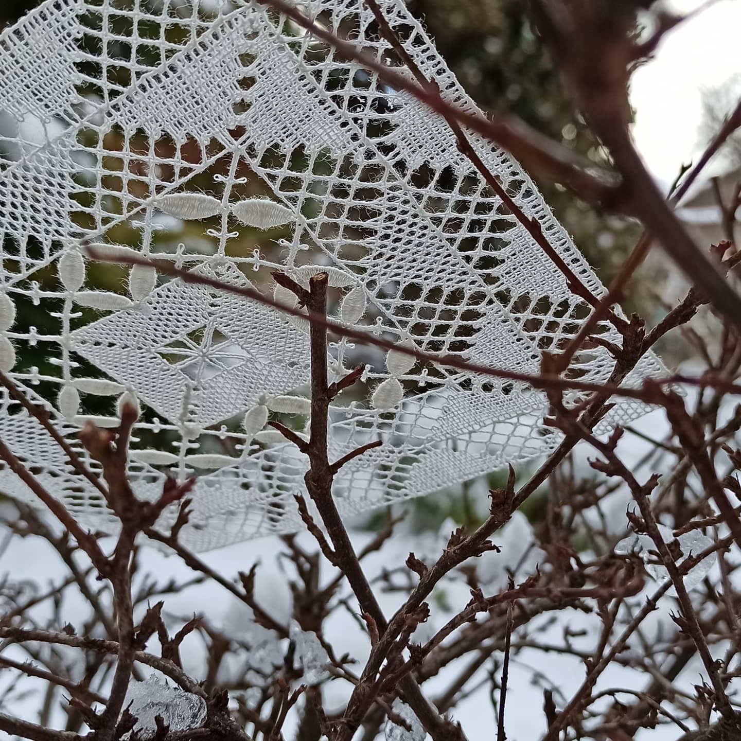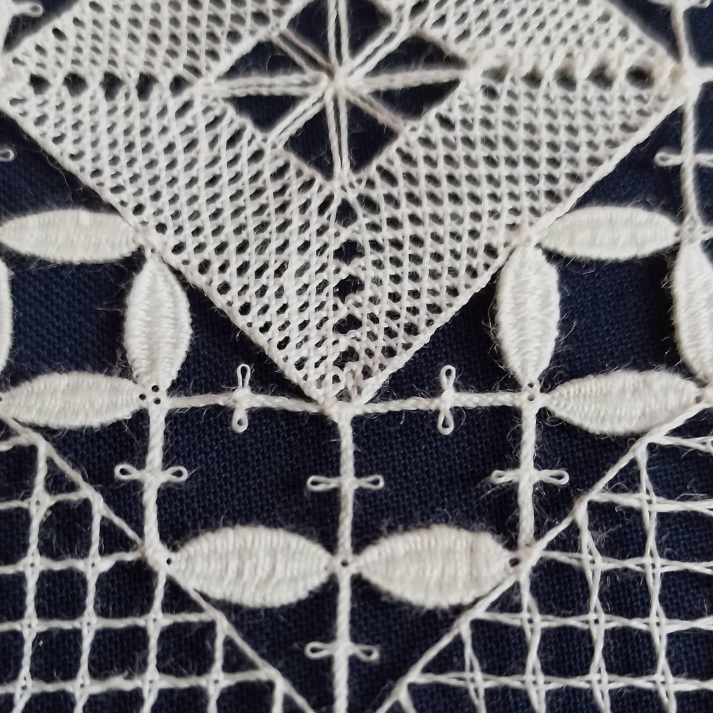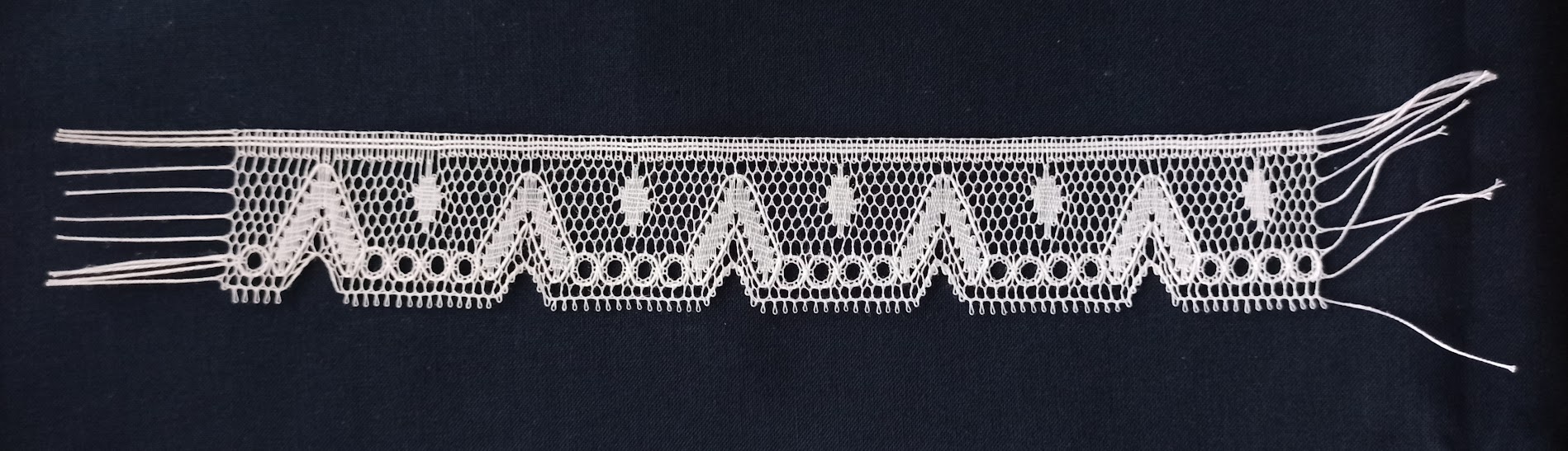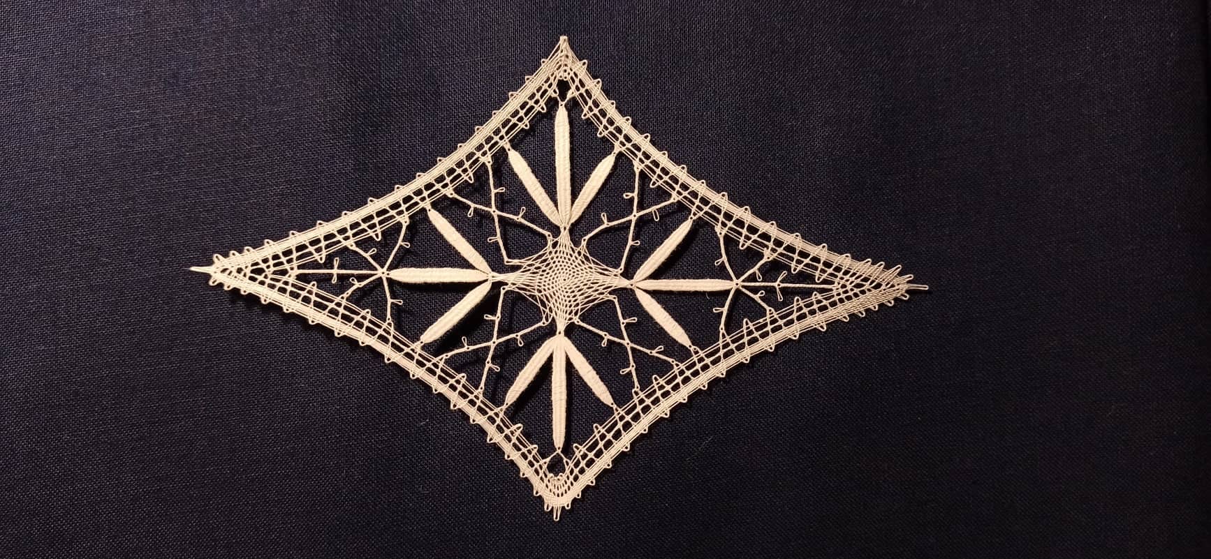 Letošní školní rok jsem začala studovat Střední uměleckou školu textilních řemesel v Praze. Mimo jiné praktické předměty jako je vyšívání, šití, tkaní, tisk, je i krajka. Letos jsme se věnovali paličkovaní, příští rok nás čeká šitá krajka. Jelikož už základy paličkování umím, dostala jsem první hodinu jeden menší podvinek, aby si učitelka udělala přehled, jak ho zvládnu. Obtížnější pro mě na tom bylo pouze upaličkovat dlouhé lístečky, protože jsem paličkovala z tenké nitě a udržet dlouhý a větší lístek je těžší.